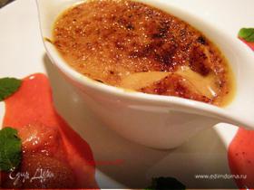 Когда все будет готово, клубнику порезать и смешать с 60 г сахара, лимонным соком и добавить столовую ложку воды. Пусть постоит, около 5 минут чтобы вышел сок . По краю каждой порции пройтись ножичком и опустить на половину в горячую воду на 10 секунд, тогда всё легко освободится, перевернуть крем на тарелку и сверху положить клубнику , подавать сразу так как быстро тает. - Шаг 6