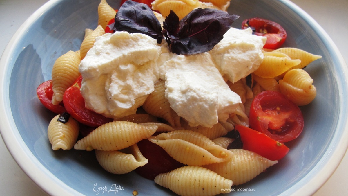 В миске смешиваем ракушки, помидорки и базилик, солим, перчим, добавляем немного оливкового масла. - Шаг 5