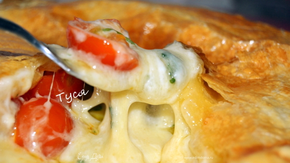 Слоеный пирог с сыром бри и помидорами
