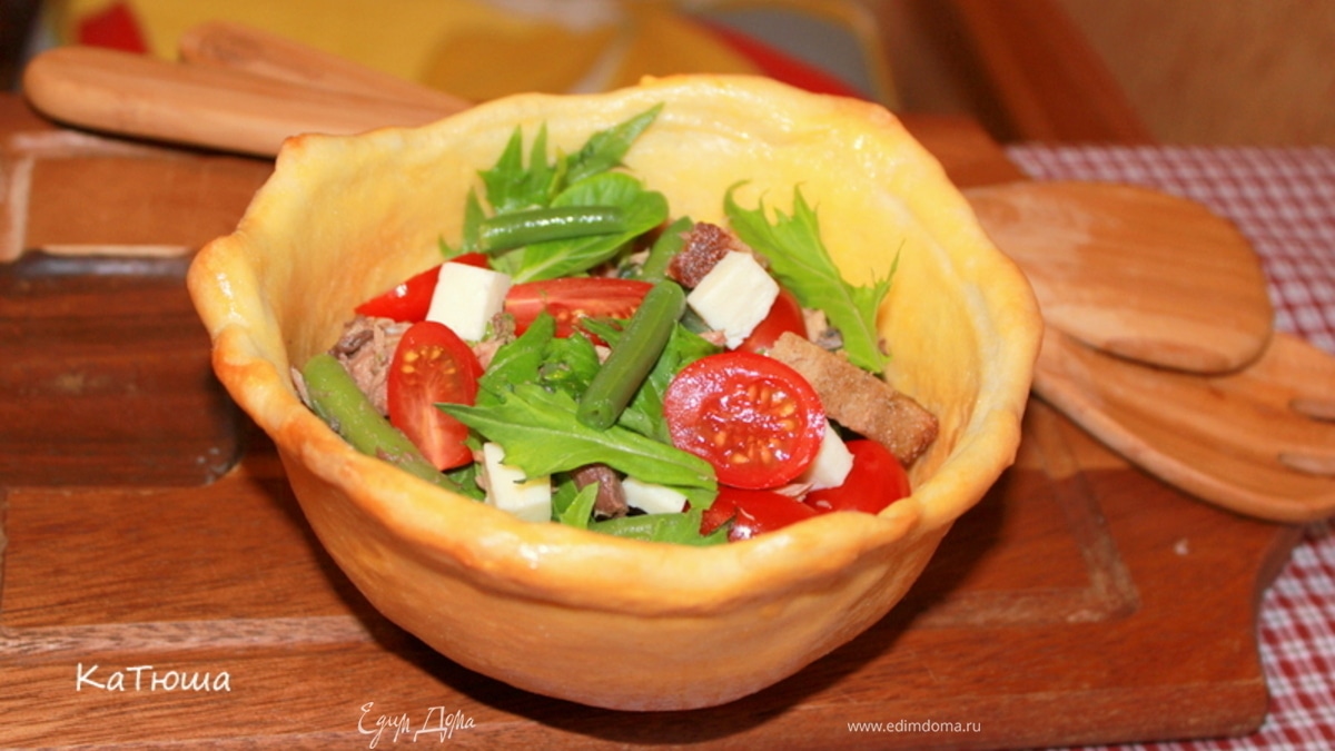Кранч-салат с тунцом в съедобной тарелке