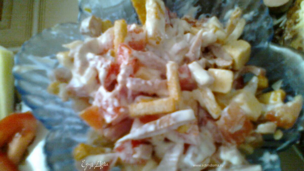 - Шаг 1Добавить сухарики, посолить и перемешать все это с майонезом) Приятного аппетита!