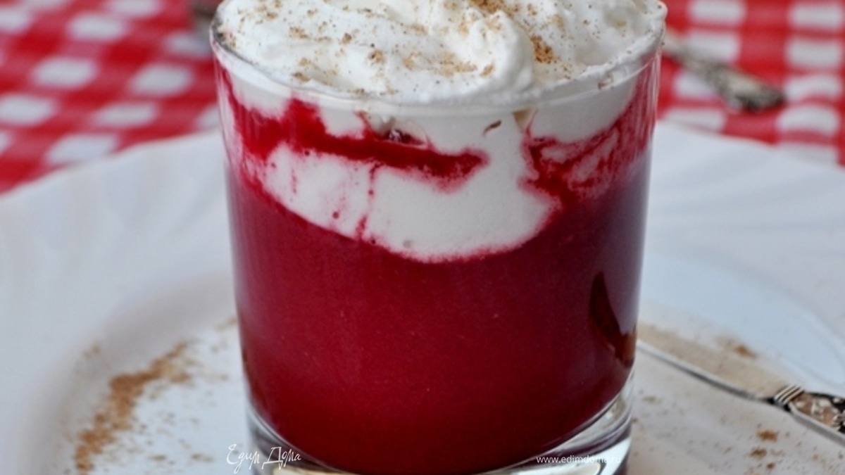 В бокалы или креманки налить готовый свекольный суп-пюре. сверху выложить "пенку" из сливок. посыпать мускатным орехом, подавать немедленно. Приятного аппетита!