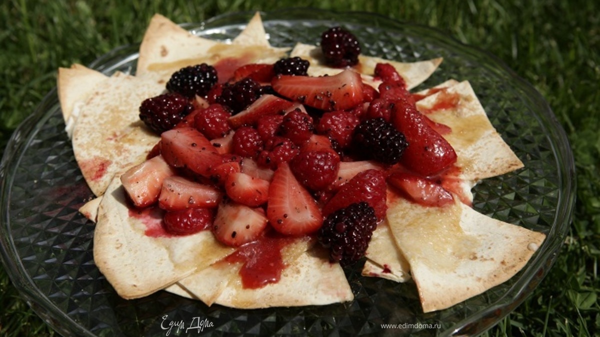 Сладкая тортилья с клубникой, малиной и ежевикой