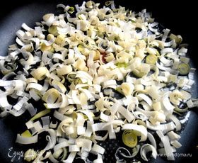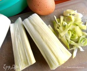 Пока делаем начинку: у меня осталась от салата белая часть порея...Мелко покрошить.
