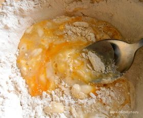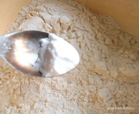 Сначала готовим тесто...В муку всыпаем соду...