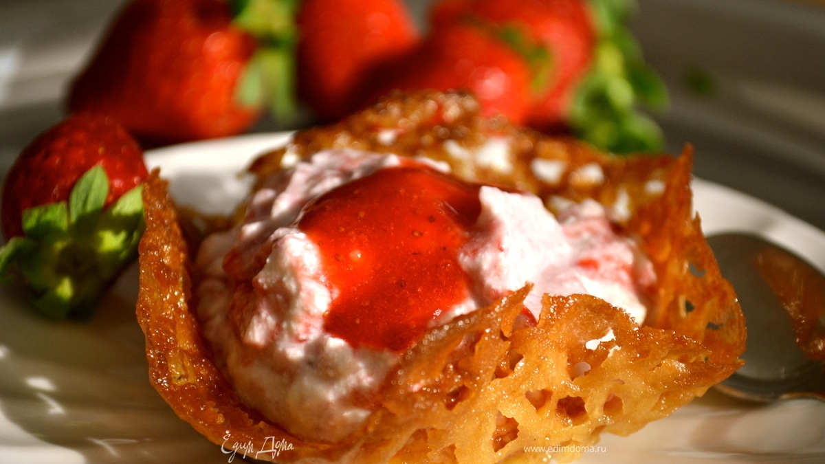 Сладкие корзинки с творожным кремом и клубникой