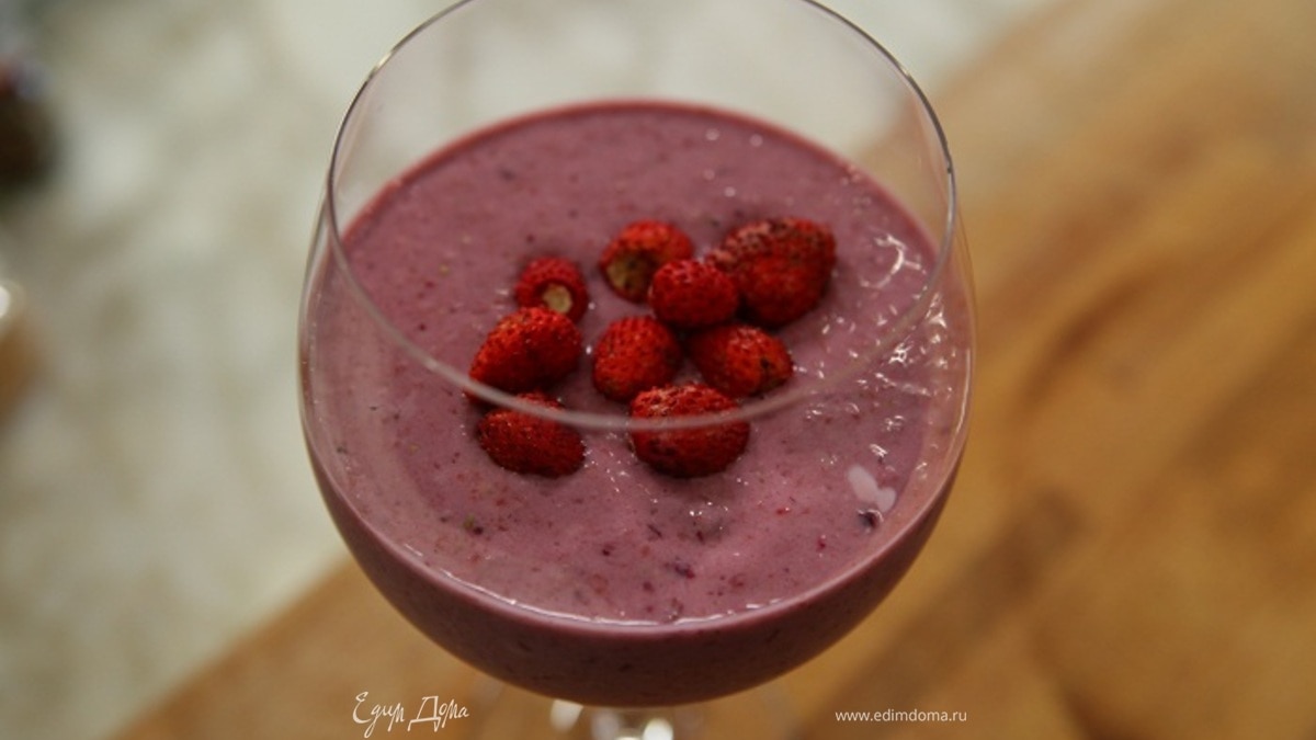 Клубнику, ежевику, часть земляники, миндальные хлопья и йогурт соединить в блендере. - Шаг 1