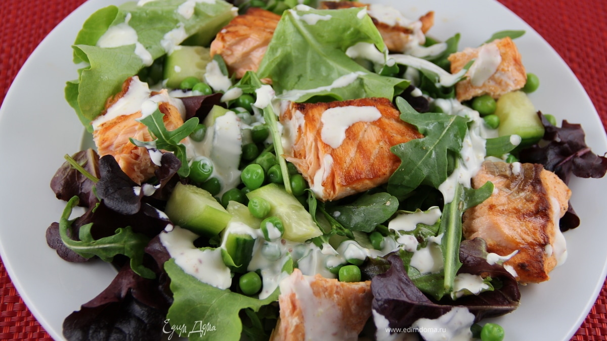 Летний салат с лососем и зелеными овощами