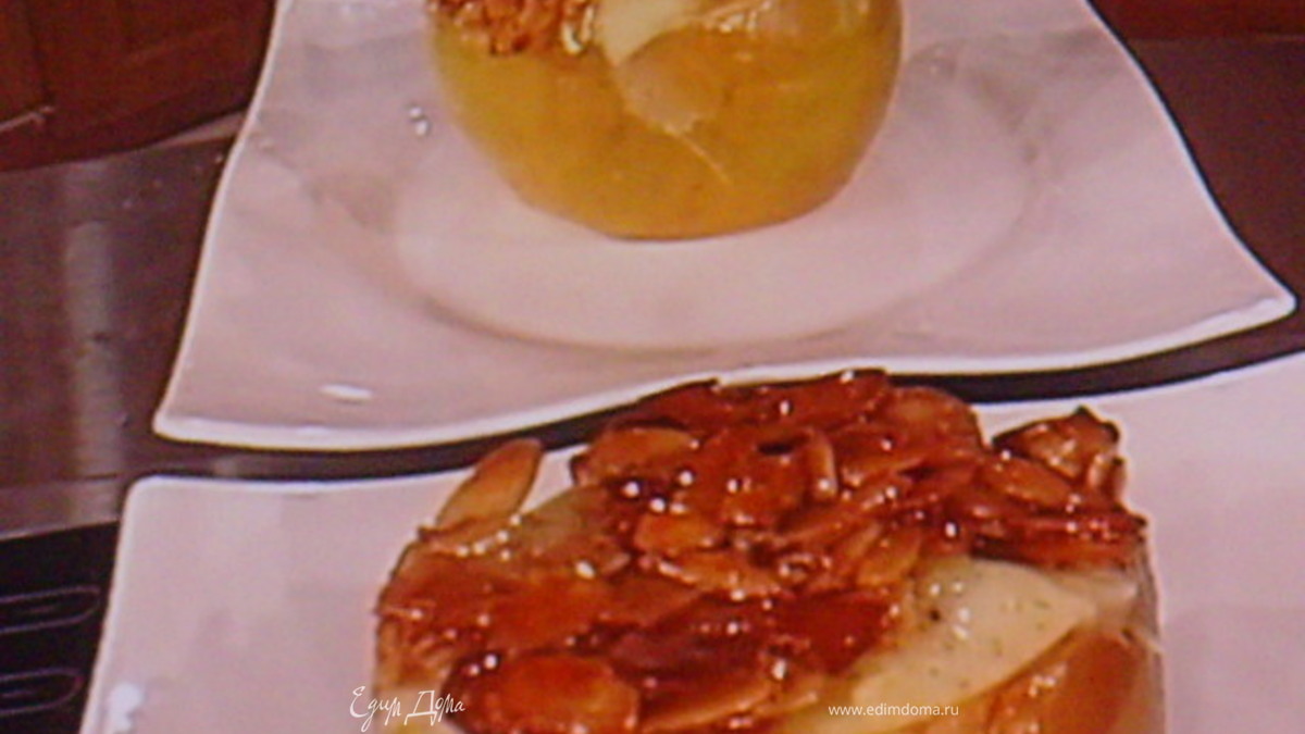Заварной крем-пудинг, запеченный в яблоке, под миндальной корочкой