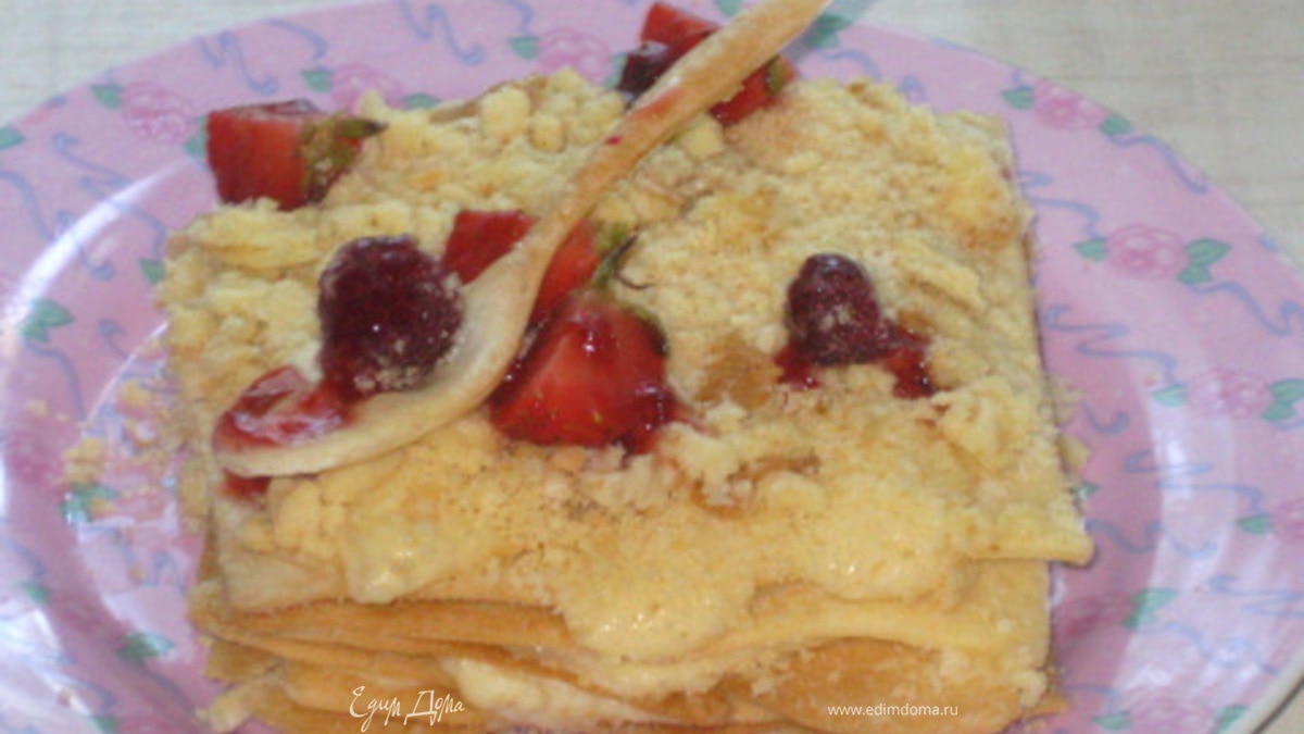 Ягодный "наполеон" с нежным кремом и слоеными "ложечками"