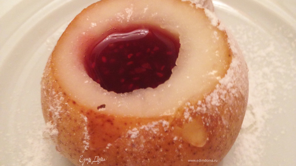 Запеченная груша с малиной