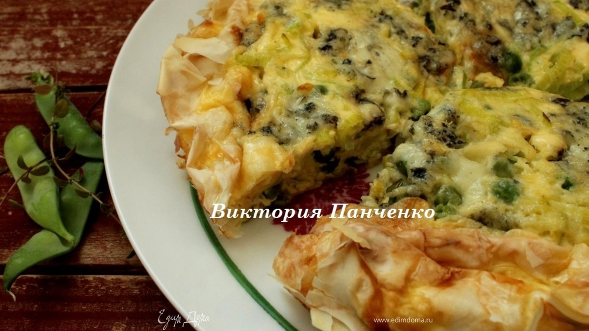 Еще один пирог для любителей теста фило. Рецепт из журнала "Вкусно и полезно". В оригинальном рецепте этот пирог с добавлением бекона и с сыром камамбер. Бекон я исключила, а сыр заменила на голубой.