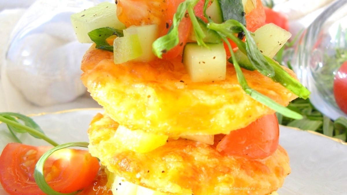 Сырный мильфей с легким овощным салатом (Cheese millefeuille with vegetable salad)