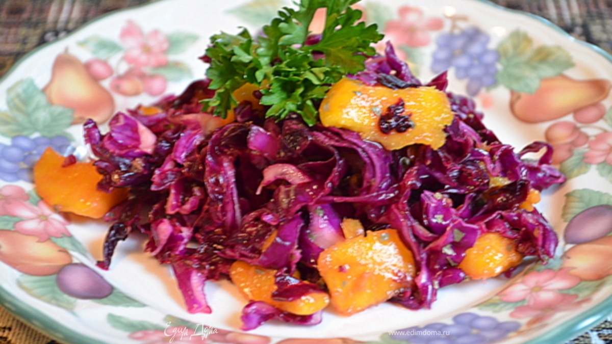 Салат с красной капустой и манго