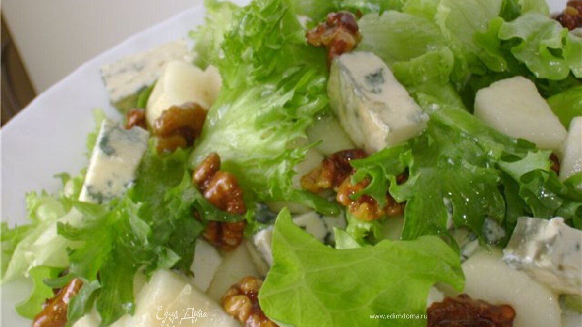 Нежный салат с грушей и рокфором