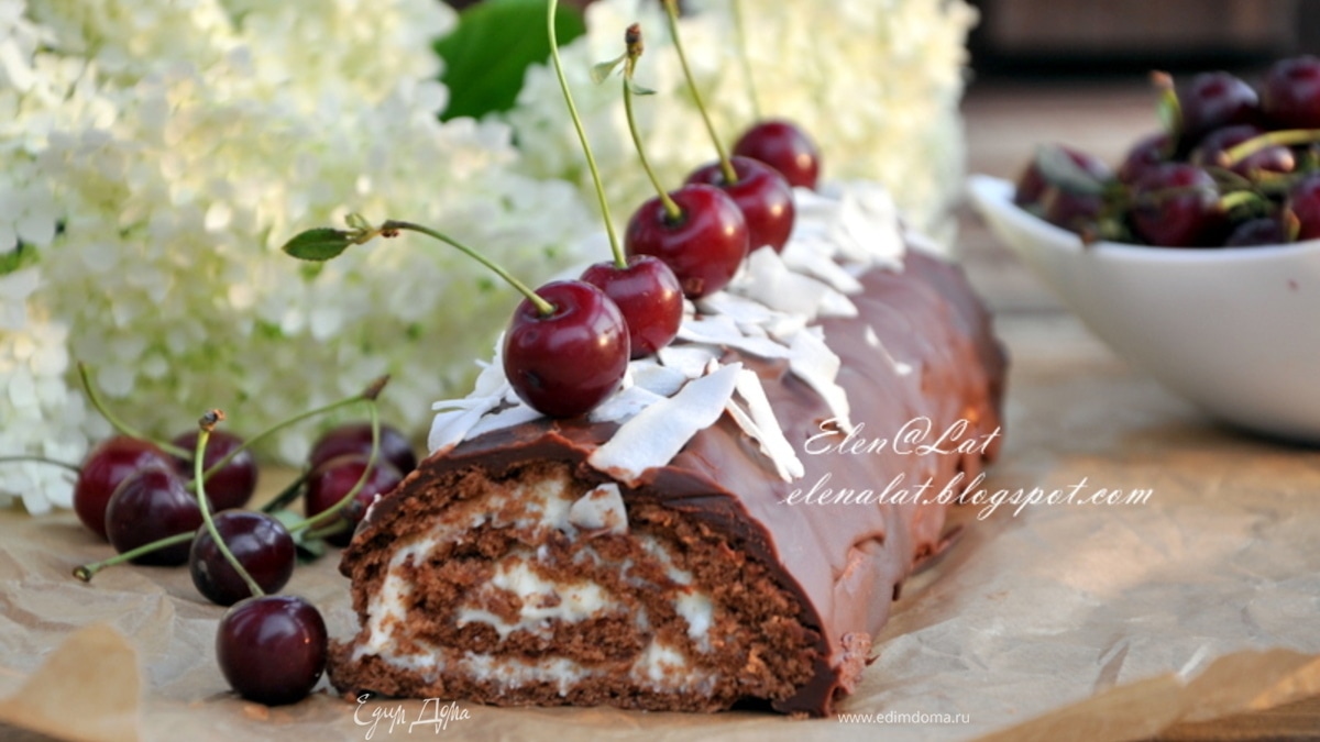 Шоколадный рулет с кокосовым кремом