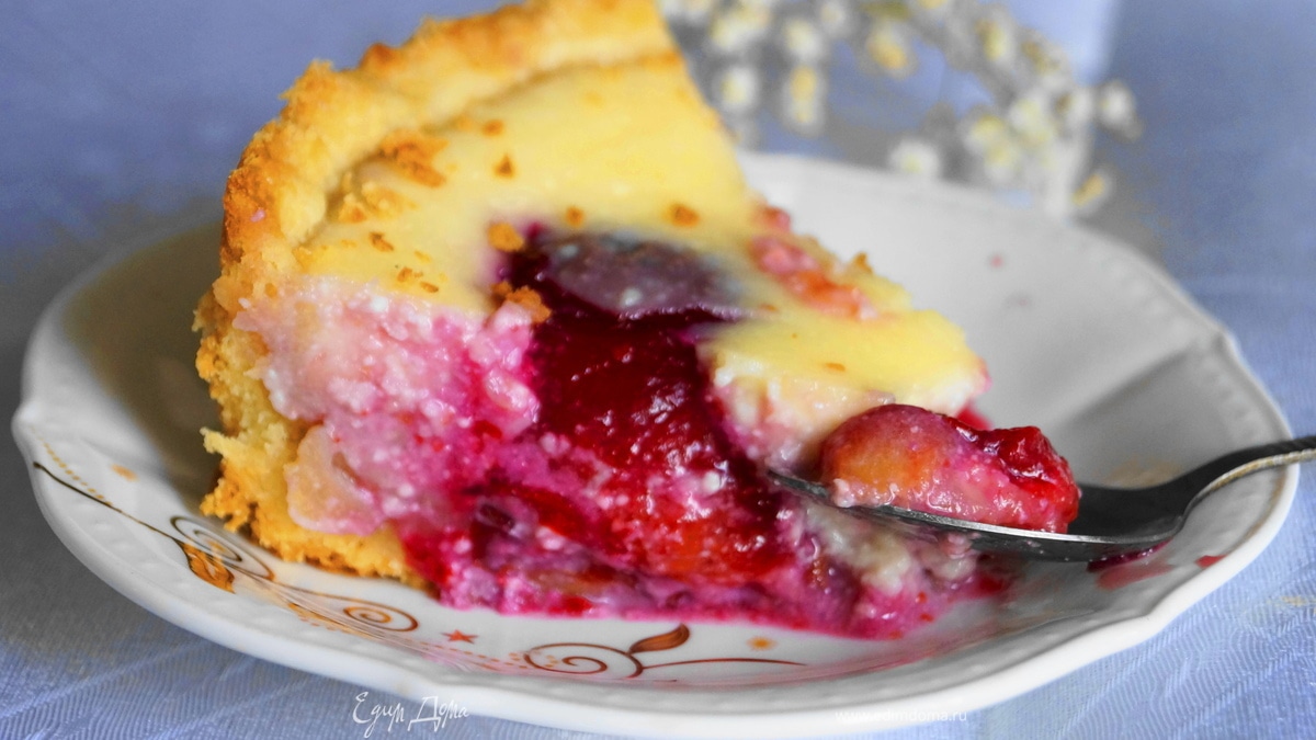Пирог со сливами и творожной заливкой