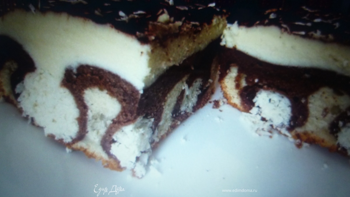 - Шаг 1Готовим тесто, предварительно разогреть духовку до 200 "С.Масло (маргарин) взбить с сахаром, добавить белок, а затем вводим поочередно яйца, добавляем сметану, муку и разрыхлитель, тесто должно получиться густое. Если жидковатое, можно добавить еще муки. Разделить тесто на 2 части, в одну часть добавить по 3 ст.л. молока и какао.