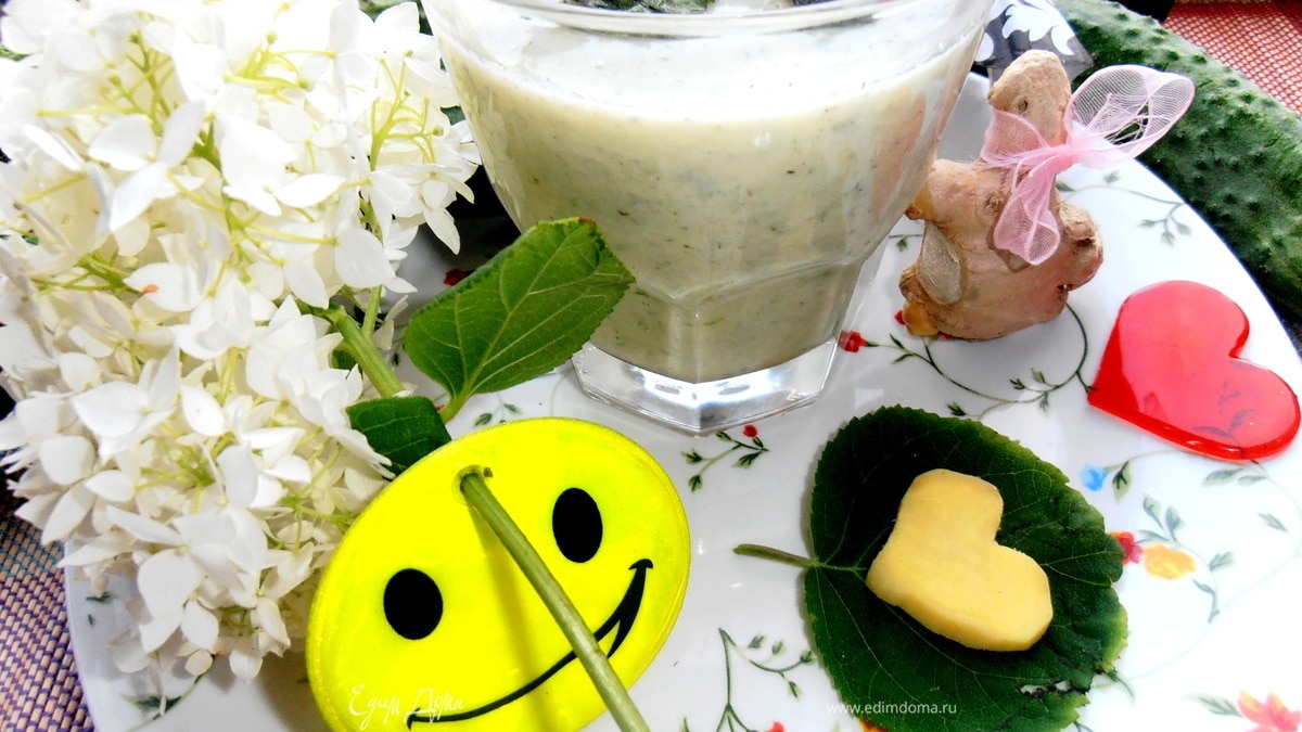 Изначально рецепт был "огурцы с чесночком"..., но раз конкурс прохладительный))), то заменила чеснок на имбирь и мяту, правда сушёную, но лучше взять свежие листики! По вкусу очень похоже на мини-холодник..., особенно, если не измельчать огурцы "в пыль")))