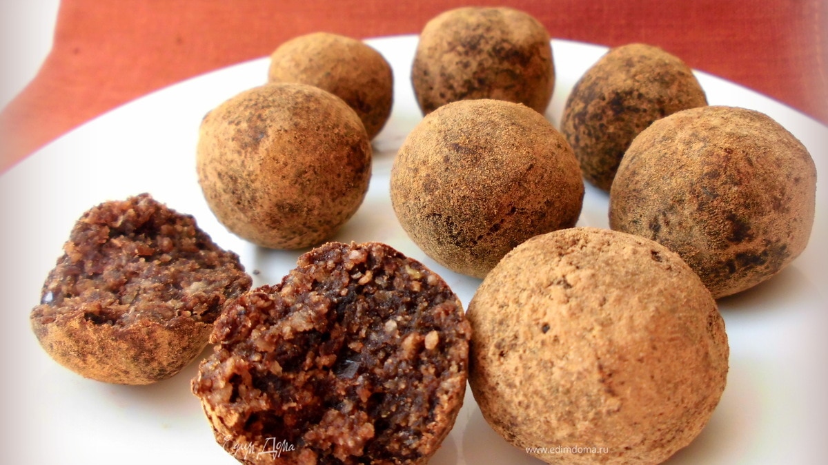 К массе добавить воду и размешать в последний раз. Из полученной пластичной массы скатать шарики-конфетки, обвалять в какао или в кэробе. Приятного аппетита! - Шаг 5