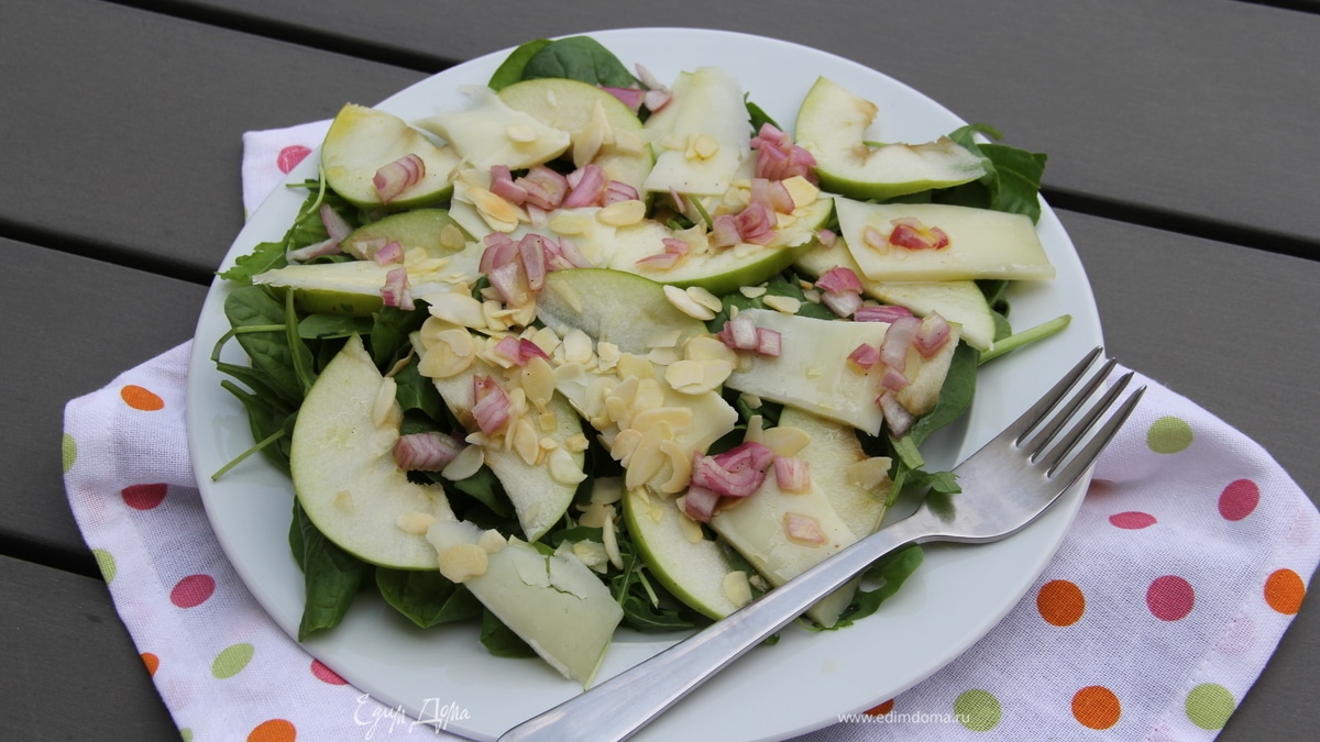 Салат со шпинатом, яблоком, пекорино, миндалем и гранатом