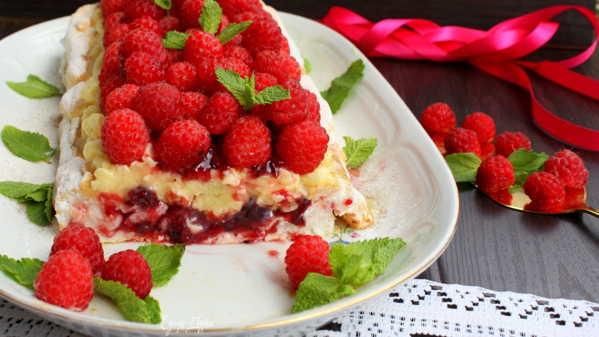 Торт "павлова" с лимонным кремом и малиновым конфи