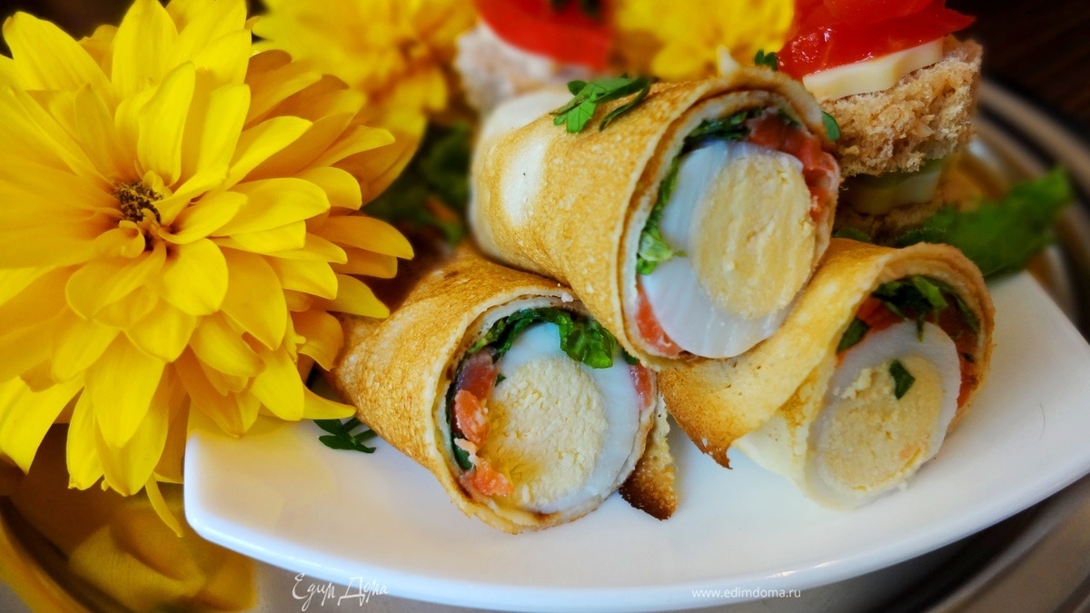 Каким бы не был завтрак: романтический, воскресный, будничный, быстрый, для моего любимого - главное, чтобы он был сытным и вкусным. Так как он является большим любителем яиц в разных вариантах, на замену яичнице и омлету я иногда делаю быстрые рулетики из блинчиков с различными начинками, в которые обязательно входят яйца)))) Довольный муж с утра это залог хорошего настроения для всей семьи!