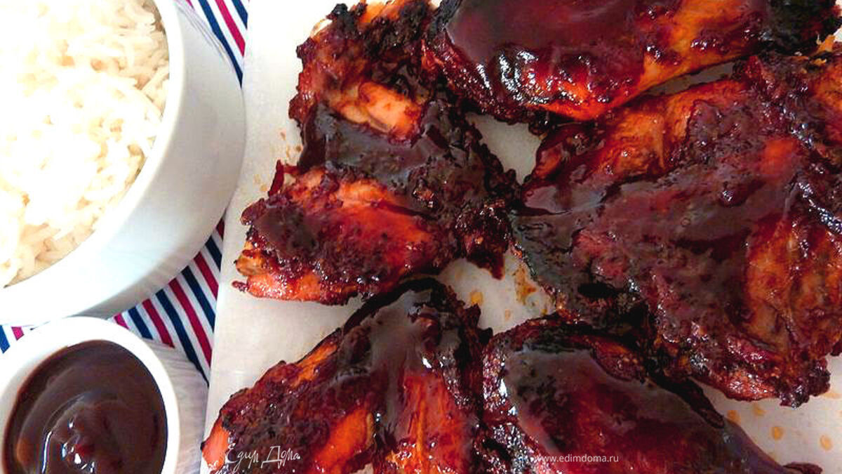Разогреть духовку на максимум . Сварить соус из кетчупа, острого соуса , яблочного уксуса, горчицы , чеснока , сахара , мелассы в маленькой кастрюле на среднем огне, от 7 до 10 минут. Разделите соус для барбекю на две порции использовать одну для смазки курице во время жарки , другую порцию для подачи . - Шаг 1