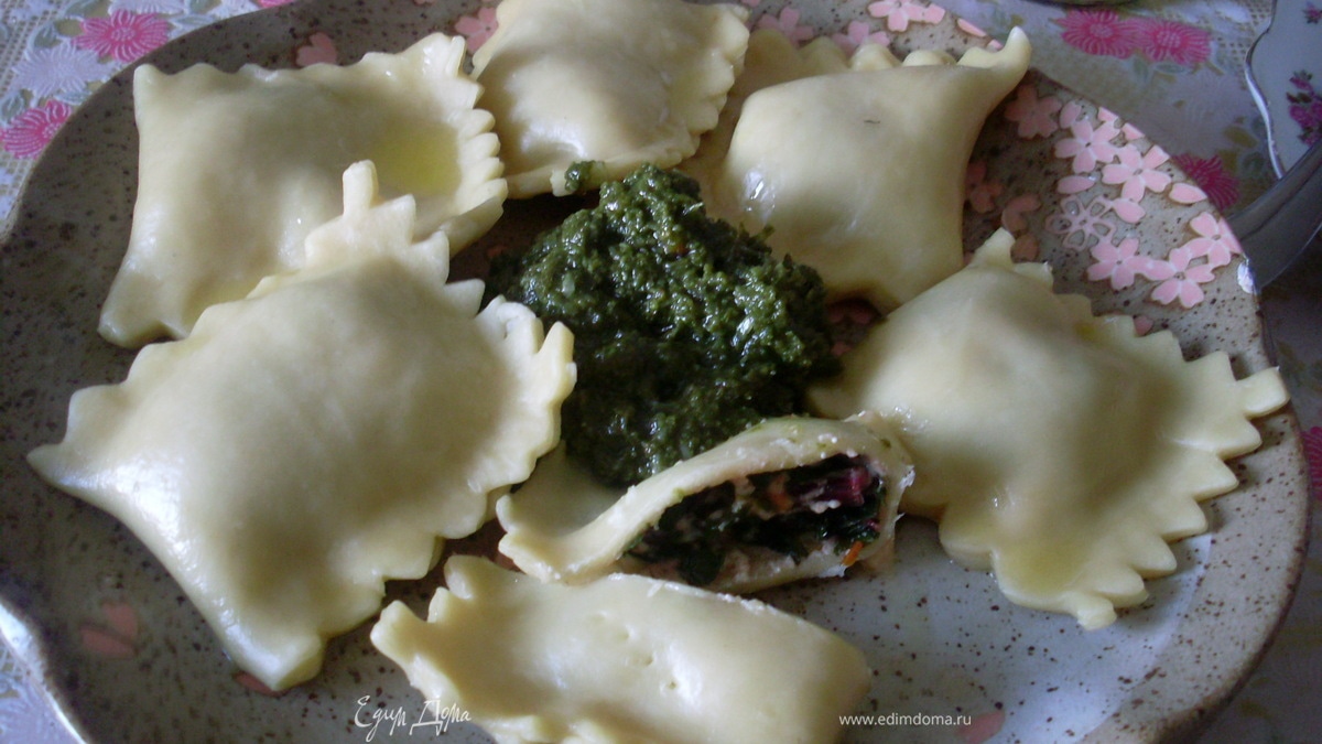 Равиоли с листьями свеклы и мягким козьим сыром с вялеными помидорами