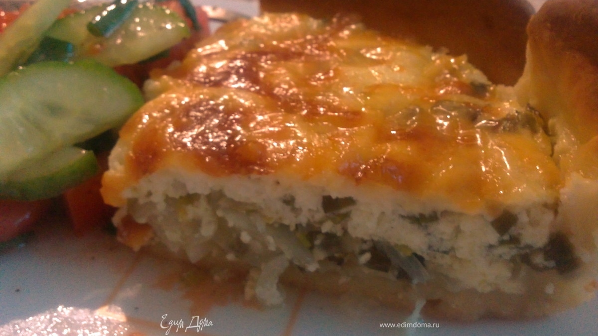 - Шаг 3Слегка взбить творожный сыр, молоко яйца и зелень. Приправить лимонным соком, солью и перцем. Нагреть духовку до 200 С. Тесто раскатать, выложить в смазанную маслом разъемную форму. Выложить и разровнять луковую начинку. Залить творожной смесью и выпекать 35-40 мин. Украсить, по желанию зеленью.