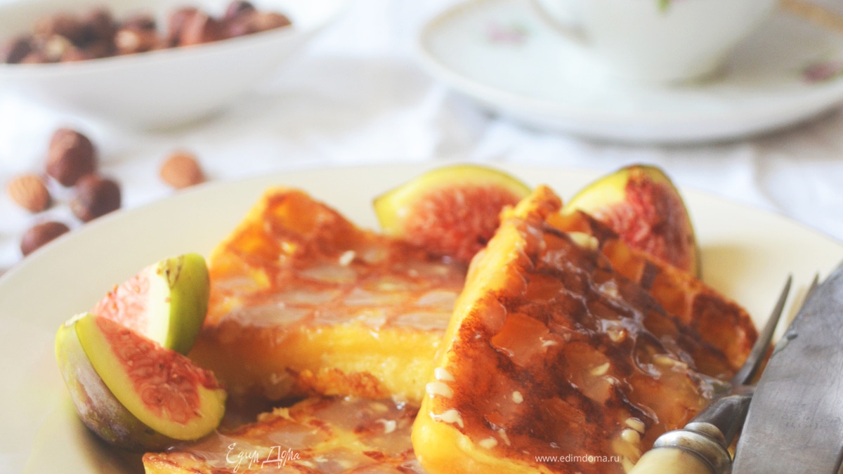 Бельгийские ореховые вафли с соусом из белого шоколада и инжиром