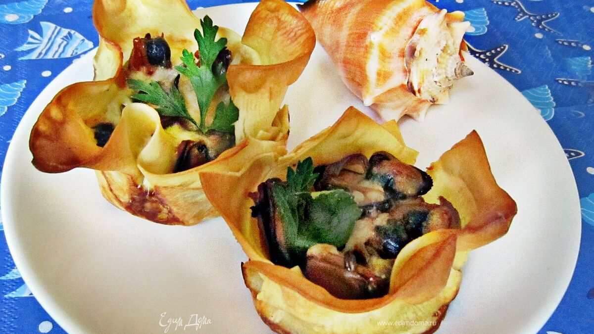 Оригинальные корзиночки с мидиями