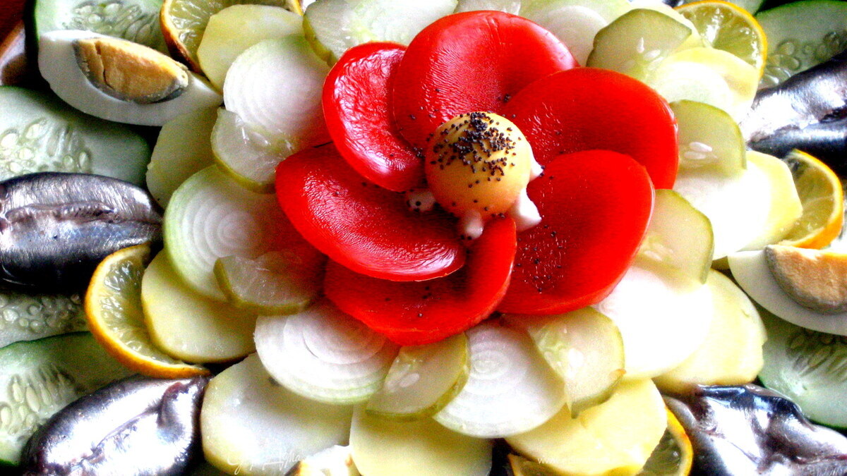 Закуска в русском стиле с "маком" в центре