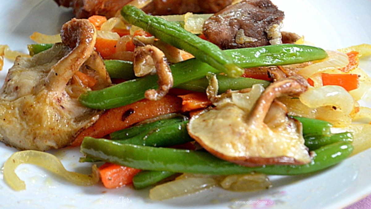 Затем добавить зеленую фасоль и морковь, посолить и поперчить специями. Закрыть крышкой и готовить 5 мин. все вместе. - Шаг 3