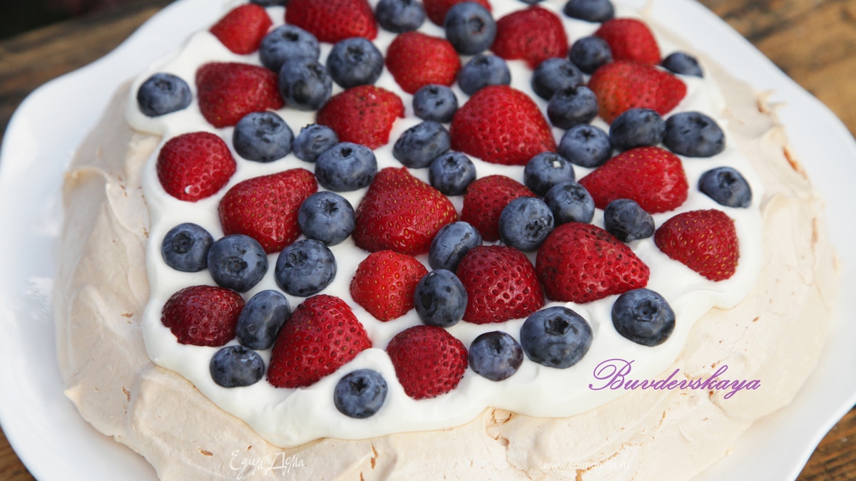 Восхитительный торт: хрустящий снаружи и мягкий внутри. Готовится быстро и просто. И муки в нем нет ни грамма…Подойдут любые свежие или консервированные ягоды и фрукты ( не слишком водянистые). Но мне очень понравилось сочетание голубики с клубникой или малиной :) От других рецептов он отличается яблочным уксусом и Амарето- я беру сироп, но можно добавить и настоящий ! В приготовлении есть секреты, зная которые он получится идеальным с первого раза: - Используйте только чистую посуду - любая капля жира, воды или желтка не даст белкам взбиться. Чем больше миска, тем лучше, так как в массу при взбивании попадает больше воздуха, тем воздушнее, нежнее и больше получится меренга. - Важно взбивать правильное количество времени - если взбивать слишком мало, меренги получатся влажные, если слишком долго - исчезнут все пузырьки. - Старые или яйца плохого качества не взобьются до необходимого объема.