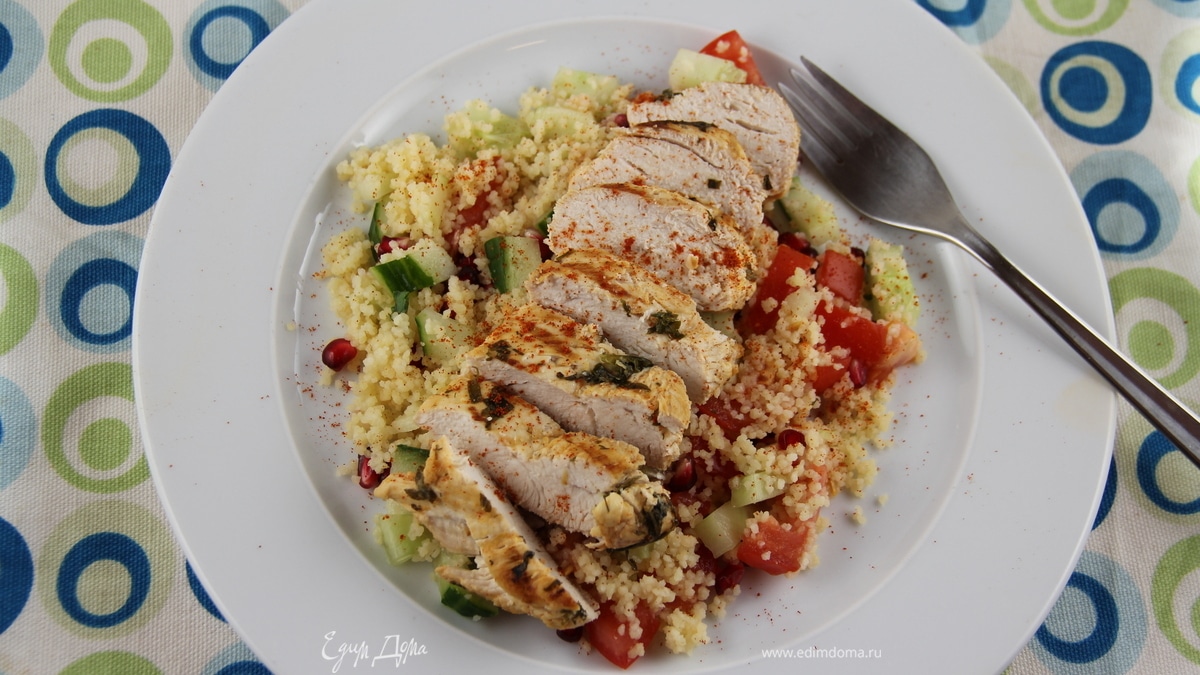 Пряная куриная грудка с травами и салатом из кускуса и граната