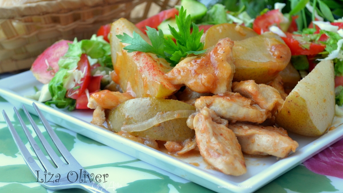 Куриное филе с грушами в винном соусе