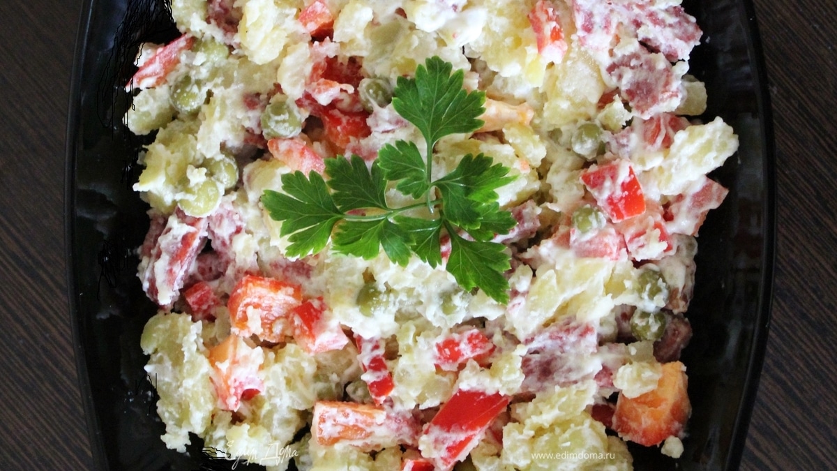 - ПодготовкаВсе нарезать длинными и тонкими брусочками, посолить, поперчить, добавить майонез и перемешать.