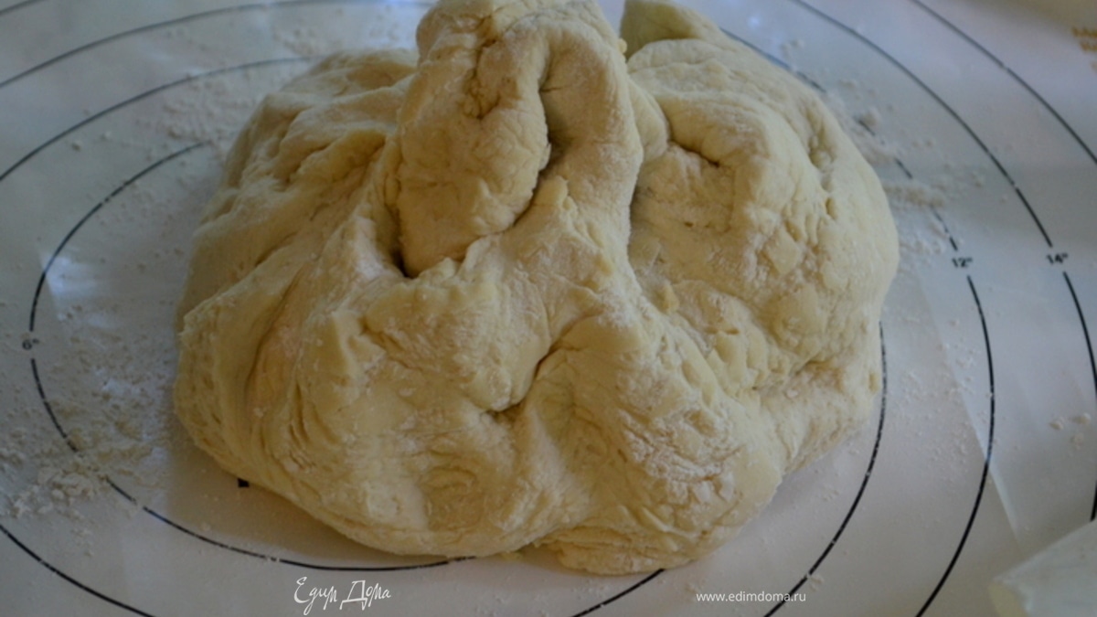 Готовое тесто достанем из х/печки. Выкладываем на рабочую поверхность. Раскатываем. Теста хватает на две круглые пиццы формы противня. Нет круглой формы - можно делать прямоугольную. - Шаг 2