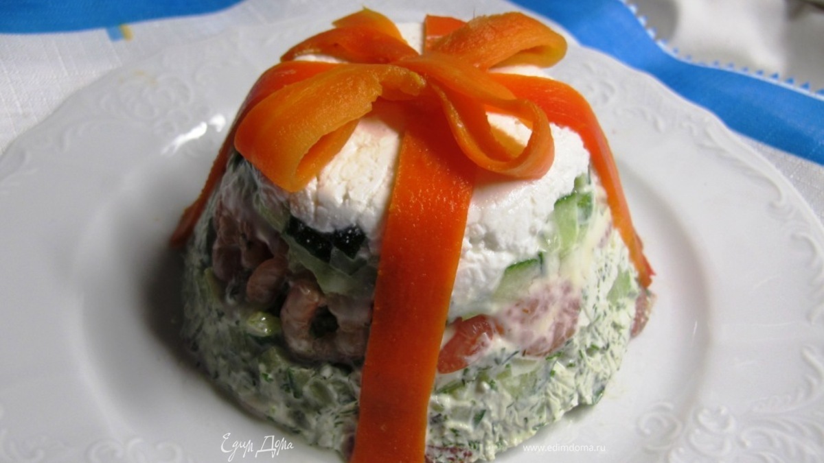 Ух ты!!!😃😍 Мне очень нравится такой салатик-подарочек!!👌 😍😋