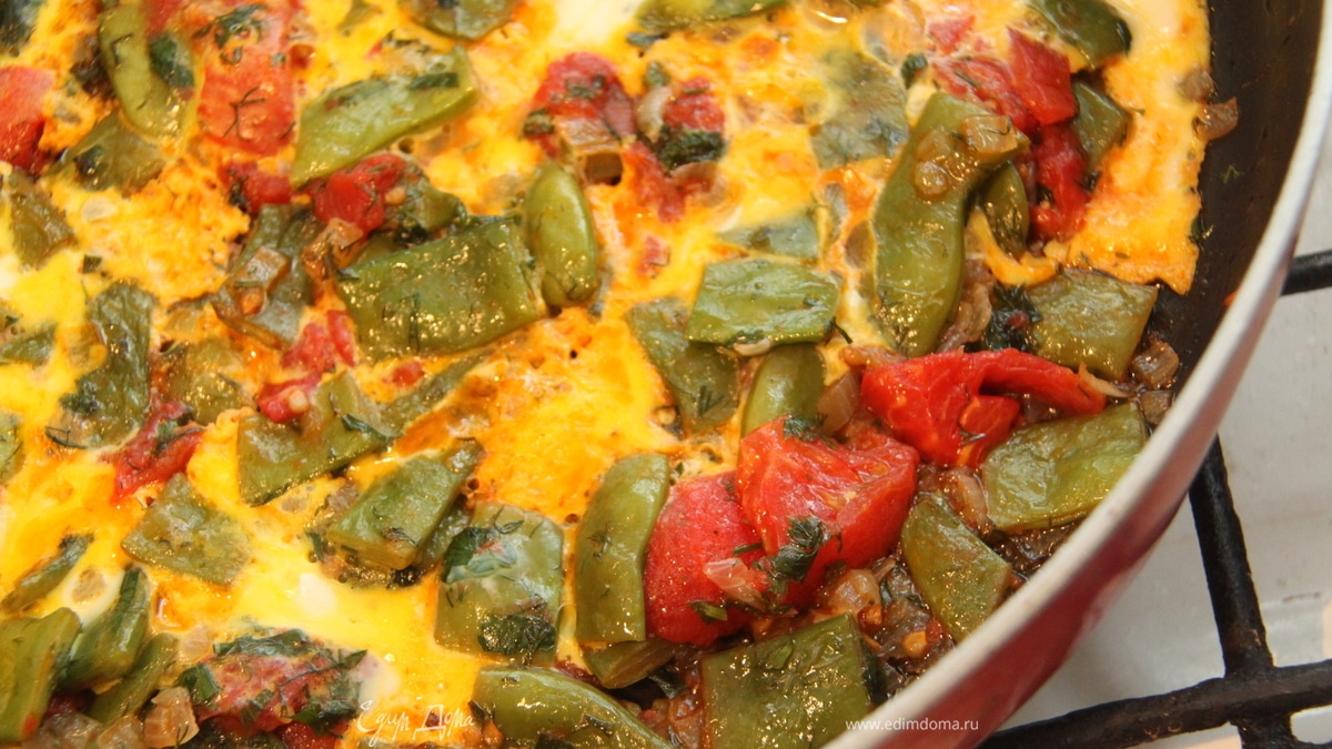 Залить яйцами овощи-зелень и томить на слабом огне минут десять под крышкой. - Шаг 9