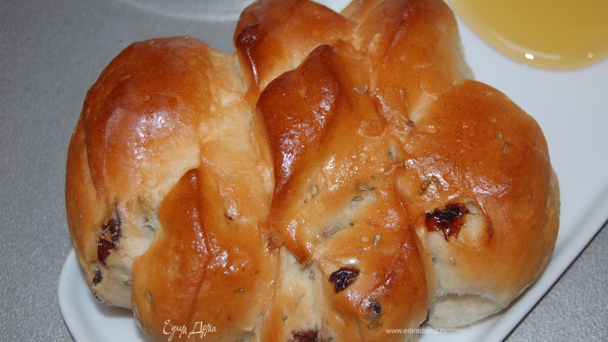 - Шаг 11.Развести дрожжи с водой, затем замесить их с мукой и оставить подниматься на 40 мин. 2.В сковороду добавить оливковое масло ,затем изюм и розмарин. Разогреть до того, чтобы масло взяло аромат розмарина. 3.После 40 минут тесто смешиваем с изюмом и розмарином (если хотите без листочков розмарина- удалите. зависит от вкуса) сахар ,соль и размешать до однородной массы. 4.На противень укладываем пергамент. Слепить из теста шарики или другую форму и оставить на 1 час 5.Смазать шарики маслом и поместить в духовку 180 на 15 мин, затем вынуть и смазать снова( 1 желток с маслом )и еще на 15 мин (оставив до румянца). После вынуть и смазать сиропом (3 ст лож воды с 3 ст лож сах).