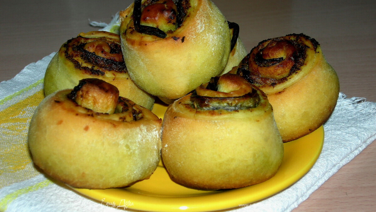 Пикантные булочки с начинкой из песто и баклажанов