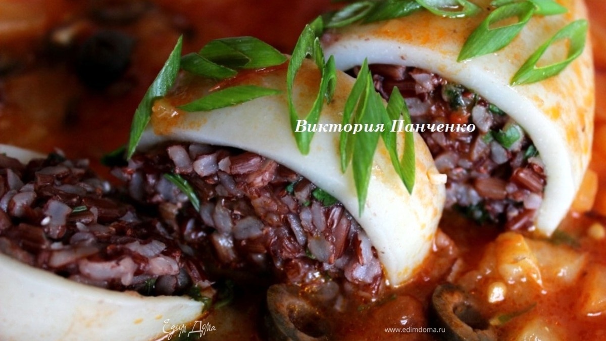 Кальмар, фаршированный красным рисом