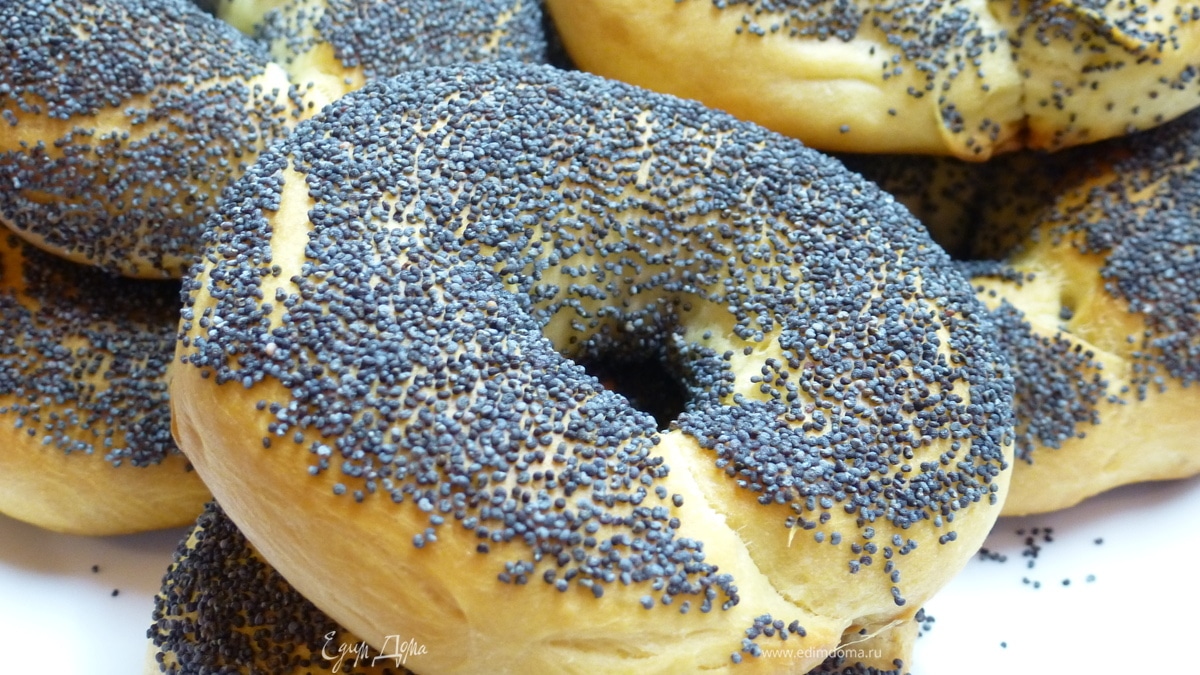 Насыпаем в тарелку мак. Противень застилаем бумагой. Каждый бублик одной стороной обмакиваем в мак и выкладываем на противень на расстоянии 3 см друг от друга. Выпекаем в разогретой до 190 градусов духовке 20-30 минут до слегка золотистого цвета.