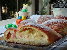 Для приготовления теста все продукты должны быть комнатной температуры. Сливочное масло должно быть очень мягким. Яйца слегка взбиваем венчиком. 500 г муки просеиваем в чашку, добавляем к ней яйца, воду или молоко, сливочное масло, соль, сахар и дрожжи (если дрожжи инстантные, а если активные - сначала разводим их в воде). Вымешиваем тесто, при необходимости добавляем муку. Мне в итоге понадобилось 570 г муки. Тесто должно получится эластичным, не тугим. Оставляем на расстойку на 1-1.5 часа. Сегодня я заводила тесто в хлебопечке, очень удобно оказалось. - Шаг 1