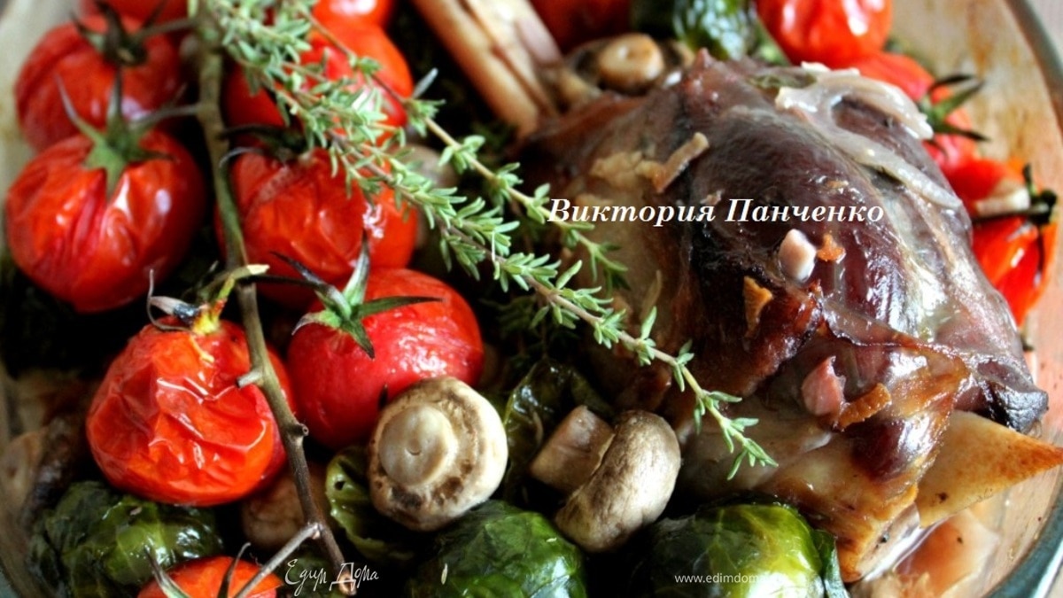 Баранина, запеченная с шампиньонами и брюссельской капустой
