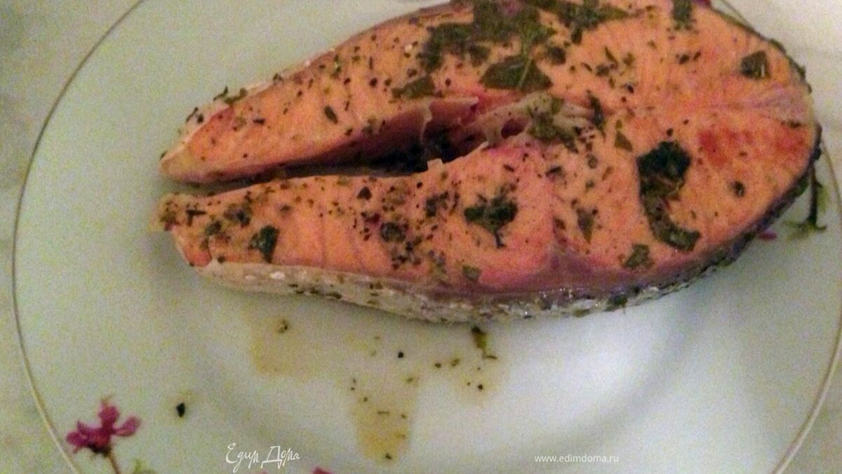 Стейк семги самодостаточен сам по себе, и даже если просто его посолить и запечь - будет вкусно, но я чуть-чуть добавляю аромата травами. Так же очень вкусно если заменить базилик тимьяном.