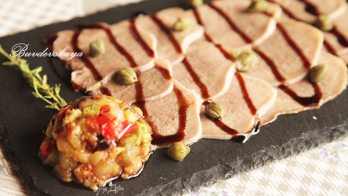 Божественное блюдо с невероятным сочетанием нежнейшего языка, ароматного рататуя и пикантного бальзамико. Прекрасная закуска на праздничный стол или вариант для легкого ужина. Идею подсмотрела у известного шеф-повара, но,