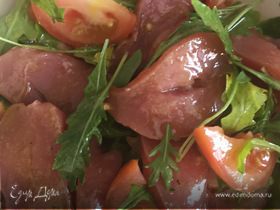 - Шаг 2Перемешиваем все ингредиенты, солим, перчим, заправляем смесью из оливкового масла и соевого соуса. Кушаем с удовольствием!!!
